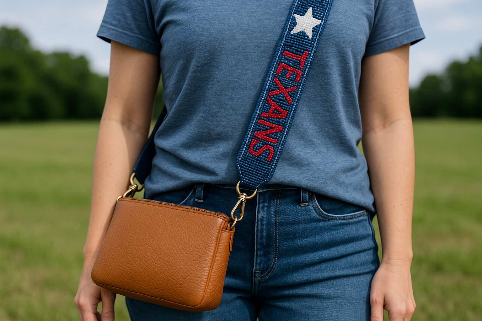 Game Day Accessories Reimagined. Stadium-approved clear bags and handmade beaded straps for MLB, NFL & college game day