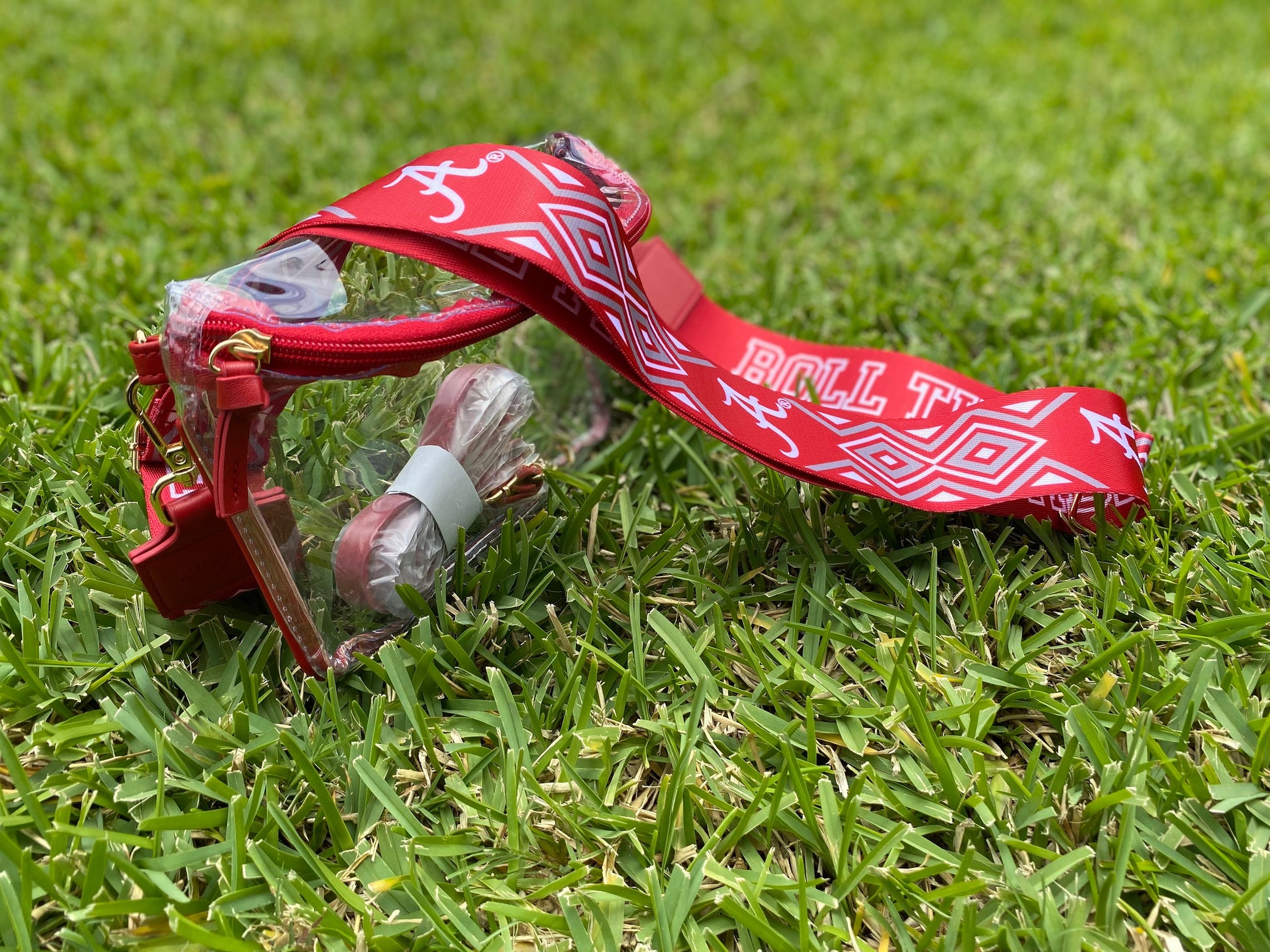 Approved stadium clear purse with Officially Licensed Alabama Crimson Tide - Roll Tide Strap.