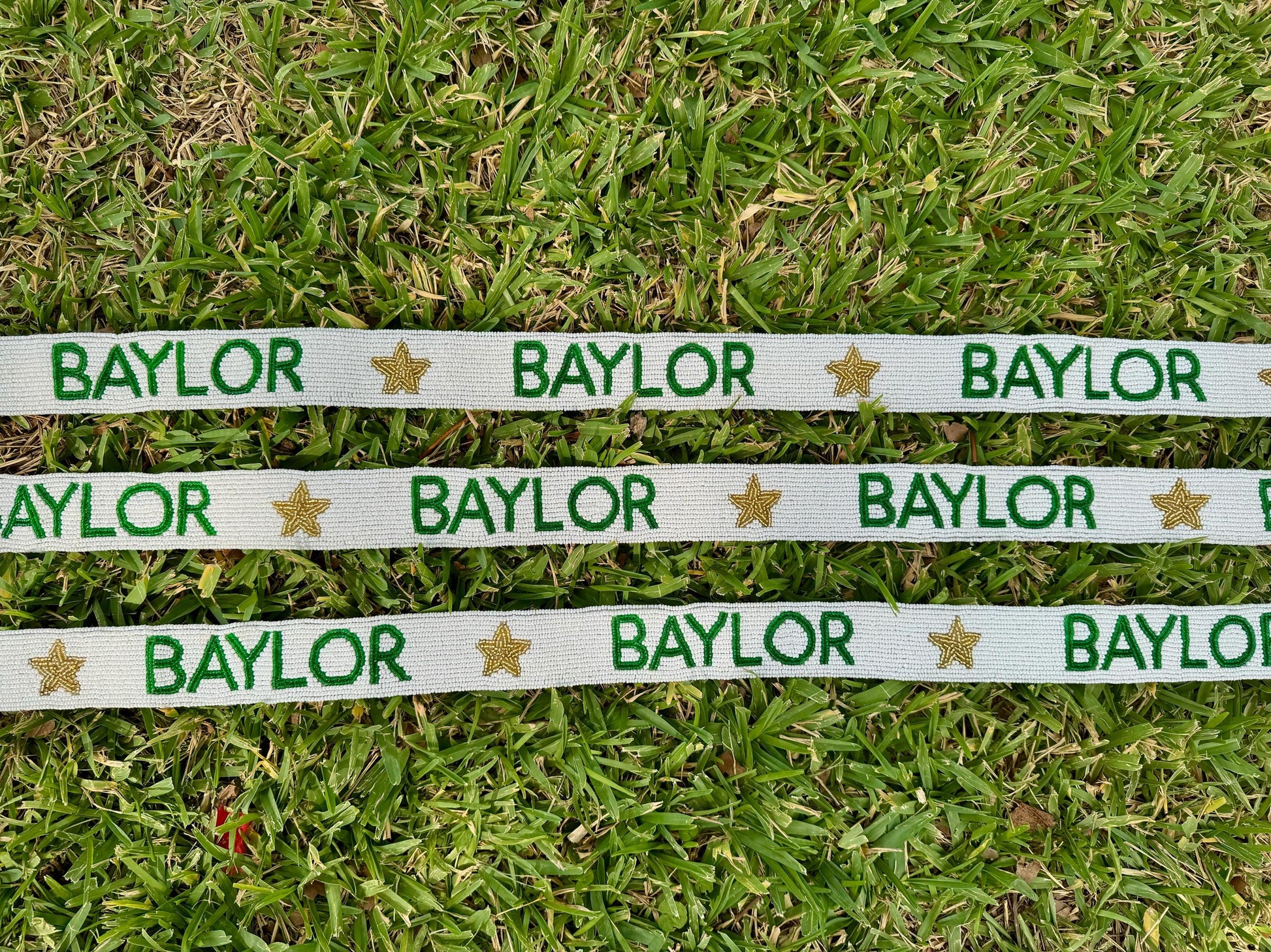 Handmade with high-quality, vibrant green and gold beads inspired by the Baylor Bears’ iconic colors