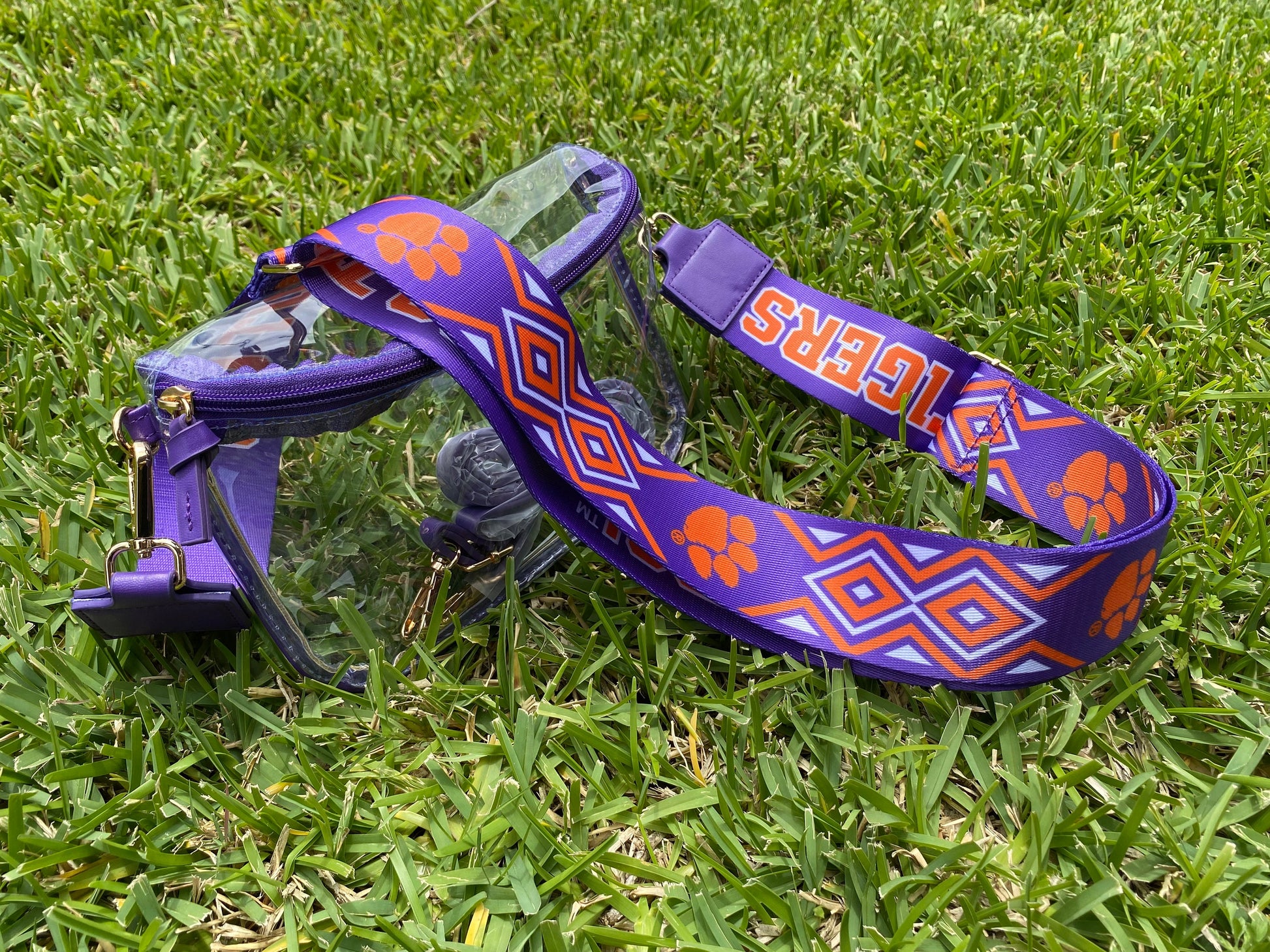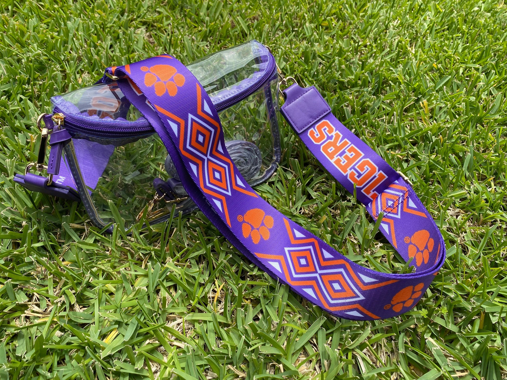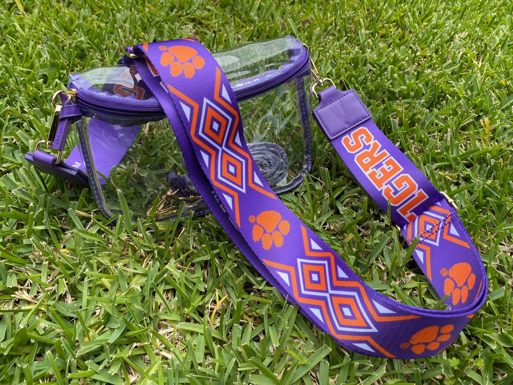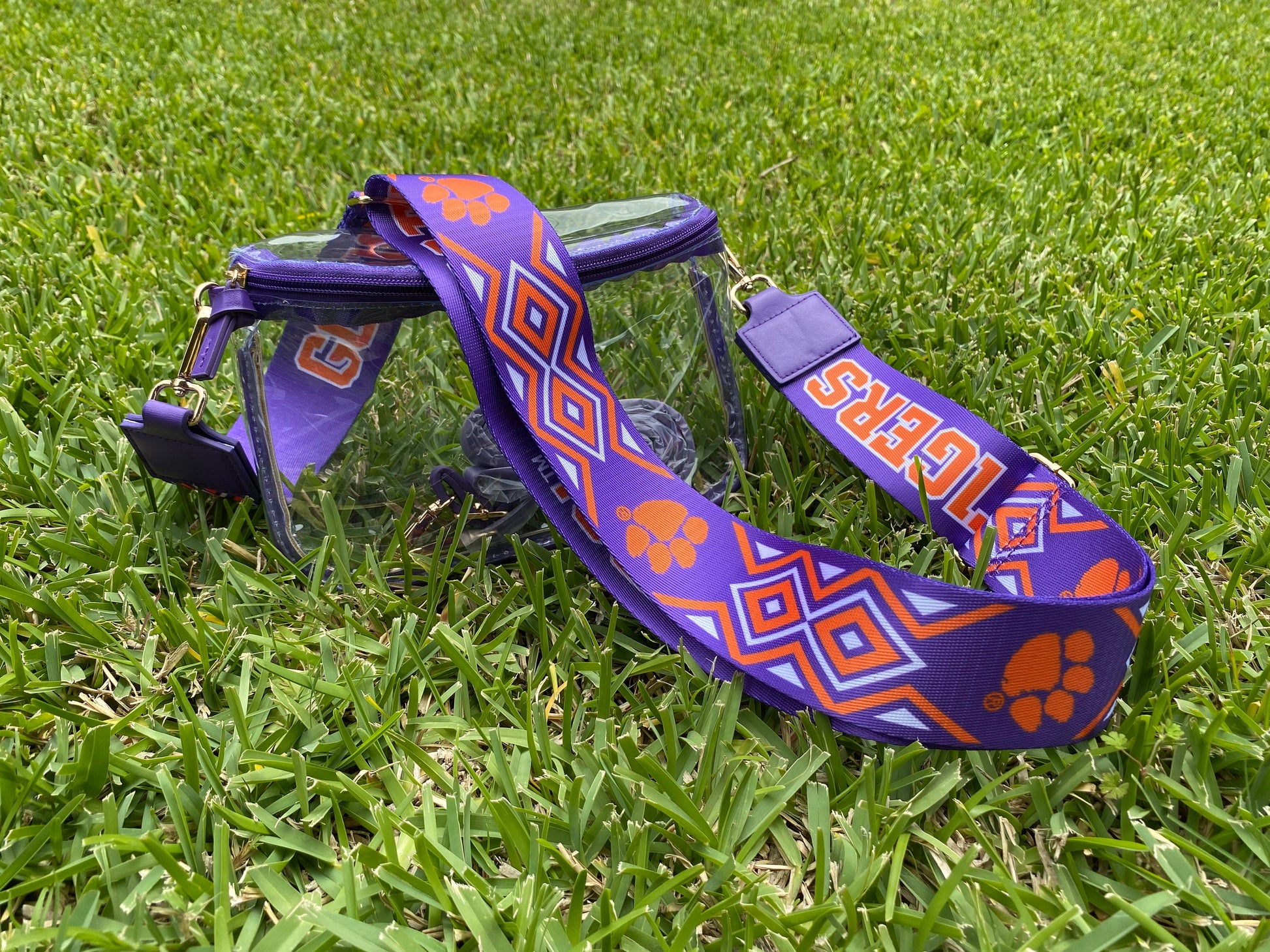 Approved stadium clear purse with Officially Licensed Clemson Tigers - GO TIGERS Strap.