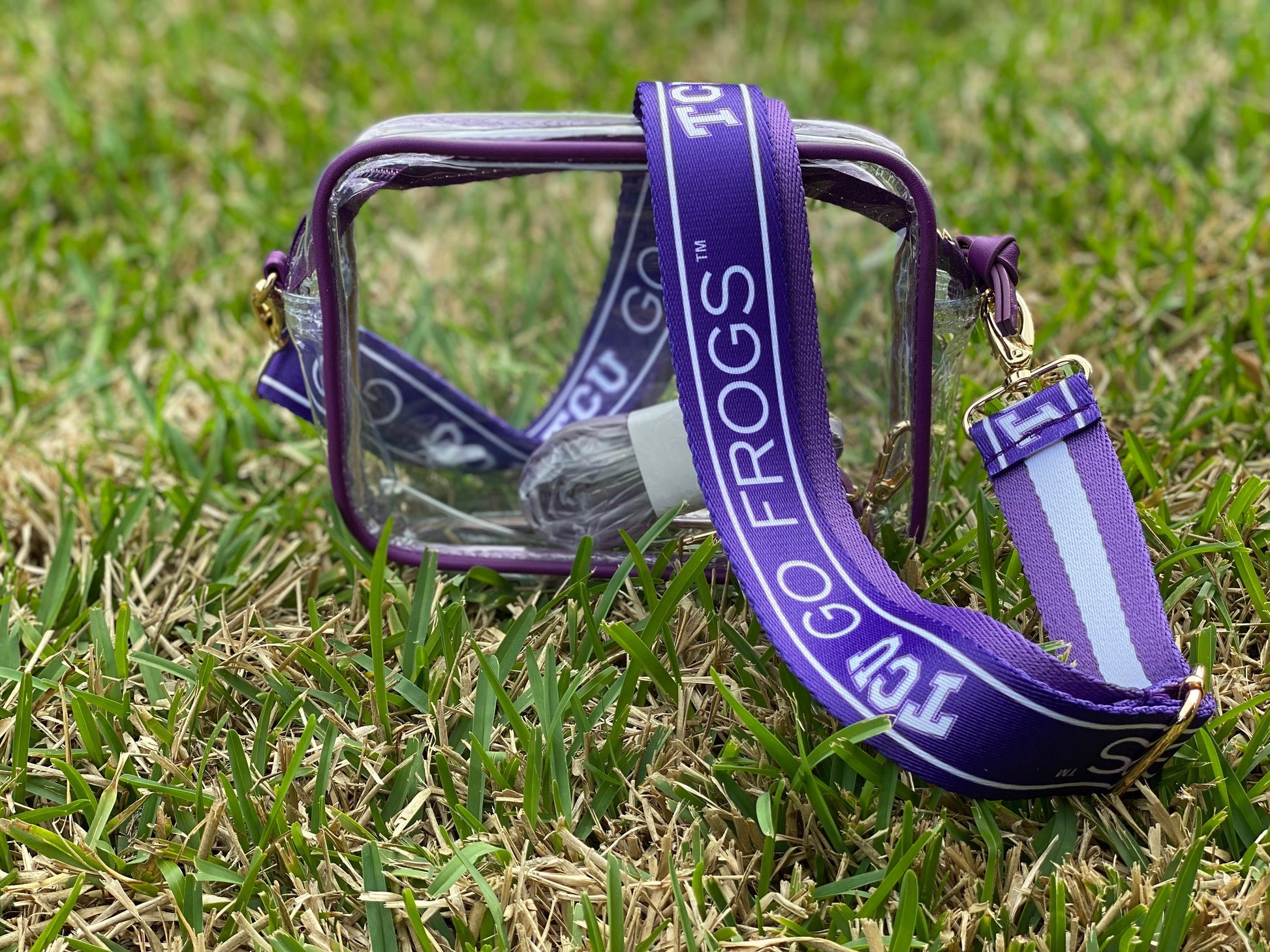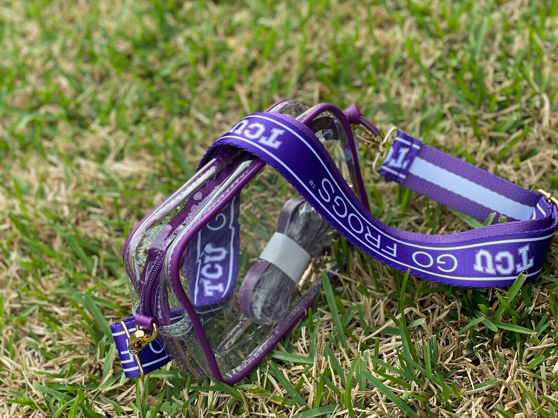 Approved stadium clear purse with Officially Licensed Texas Christian University Strap.