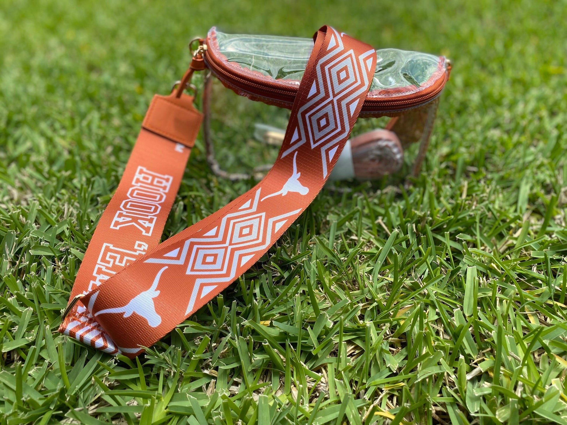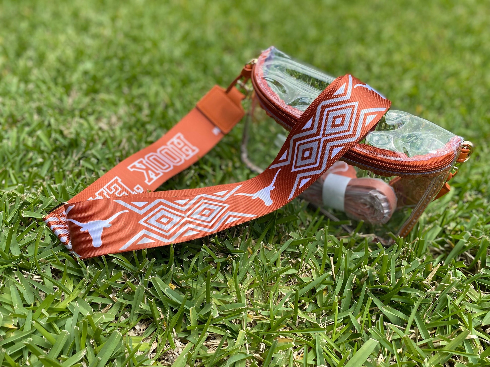 Approved stadium clear purse with Officially Licensed University of Texas Longhorn Strap.