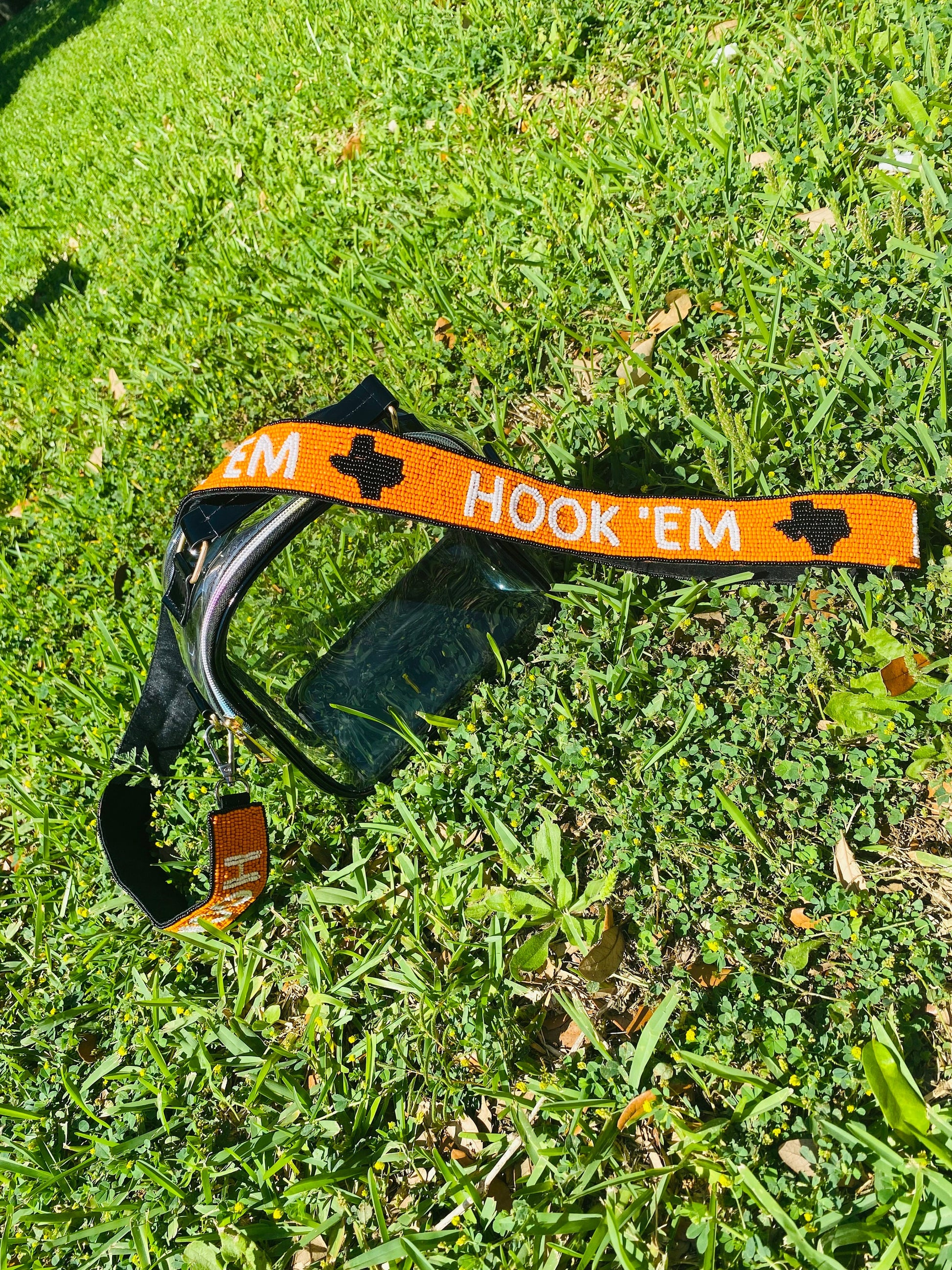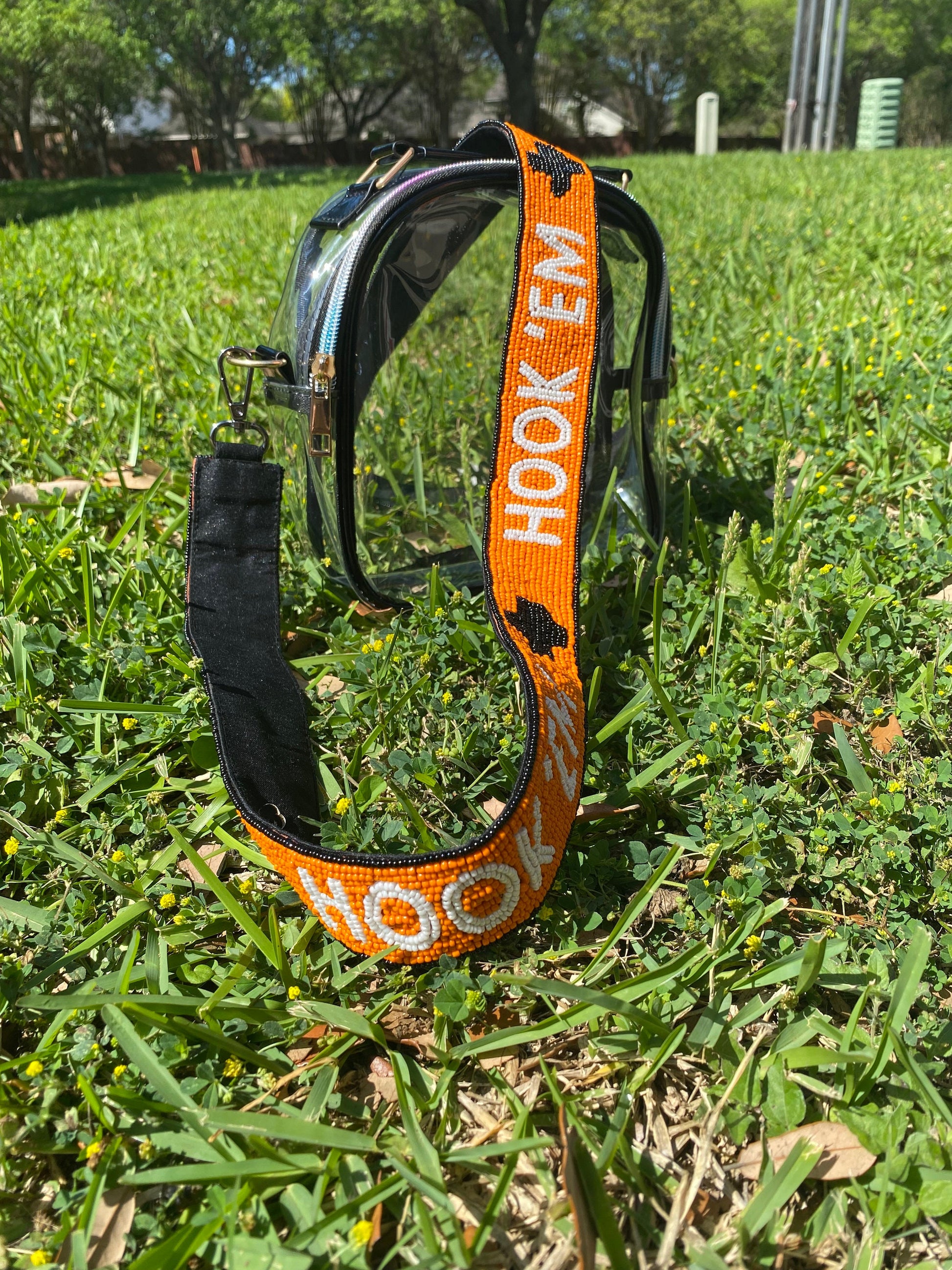 Texas Longhorn HOOKEM Clear Purse with Beaded Strap, Purse, Game Day, Stadium, University, Crossbody, Gift, Graduation, Back to School